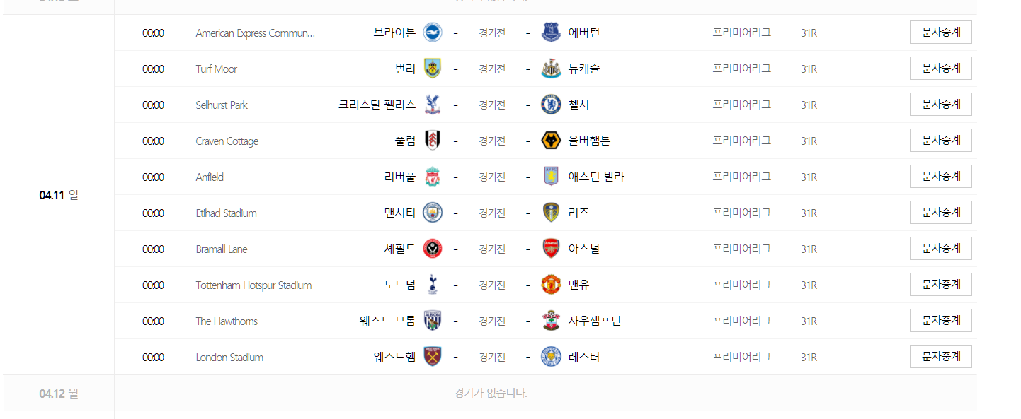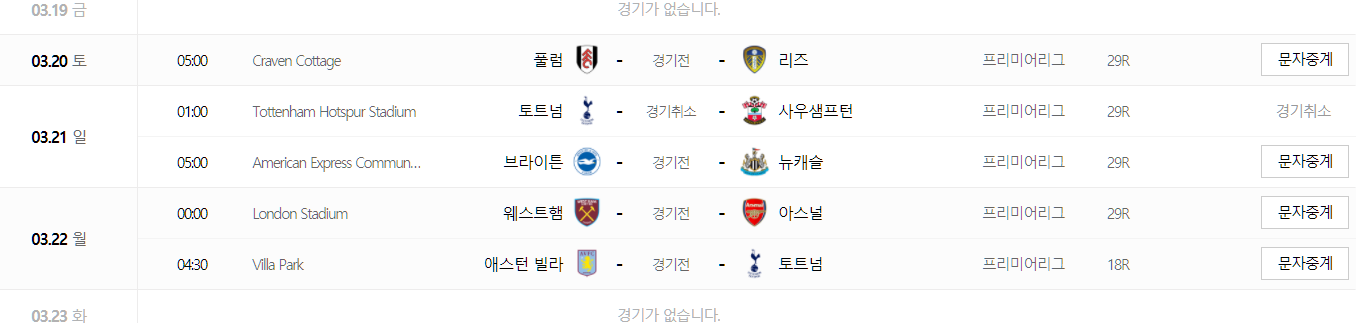 프리미어리그 경기 일정